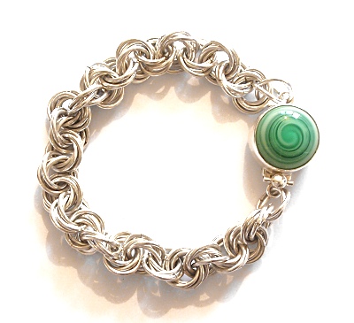 This bracelet started out originally as a sample, begun when I was teaching a private chain maille class. I was demonstrating making 'flowers' and was showing how you could add as many jump rings as possible until you got the look you wanted.