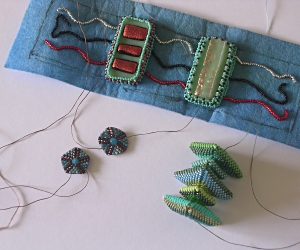 The piece at the bottom right is the next piece in my Geometric Beadwork Series. I abandoned the piece I started last year as I had the urge to change the sizes as I went along.