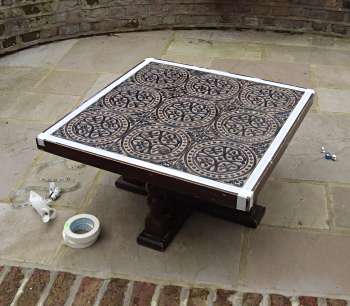 One of the main items she wanted to flock was an old tiled table and, although we didn't get it finished, we had lots of fun painting it and getting a lot if it done.