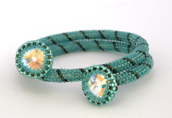 This time I used crystal AB rivolis combined with mint and forest green seed beads.