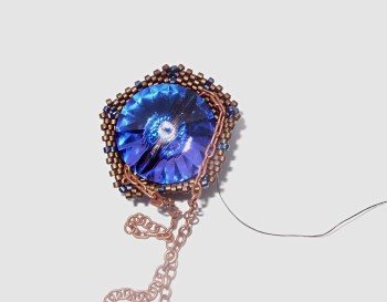 My new chain has arrived so I am itching to bead a new version of my Geometric Secret pendants using larger beads and with a big crystal button hidden inside. After looking at the crystals I have I've decided to use one of my favourite colour combinations- brown and blue.