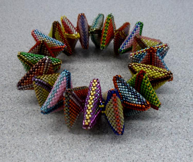 Today I'm teaching my pentagon bangles and am pleased to see both new students and those I have met on past occasions. It is especially lovely when Yoshi Marubashi, a designer I greatly admire, shows me a triangle bangle she made after taking my class. What great colours she used.