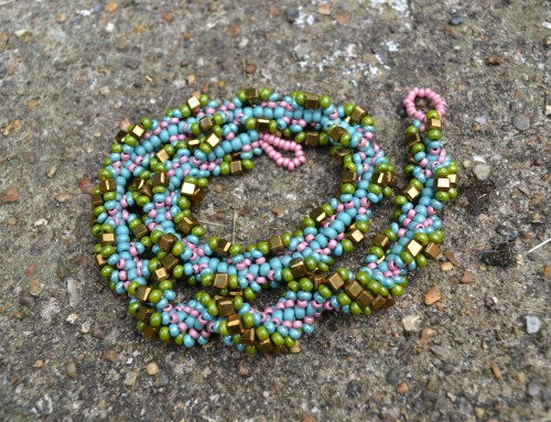 This spiral rope, and this soon-to-be triangle necklace, are for a project the details of which I have to keep under-wrap for now. It may not even ever happen, but if it does (it may be a good few months until I know) and I can say more I will of course do so- and fill my blog with some very exciting bold, bright, modern and colourful beadwork.