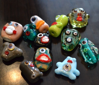 You can give directly to the cause to fund beads, or find a lampworker who is making some and support them. Marlene has been busy making face and alien beads and I fell in love with this little 'penguin alien' one so couldn't resist buying him as well as supporting her to make some more.
