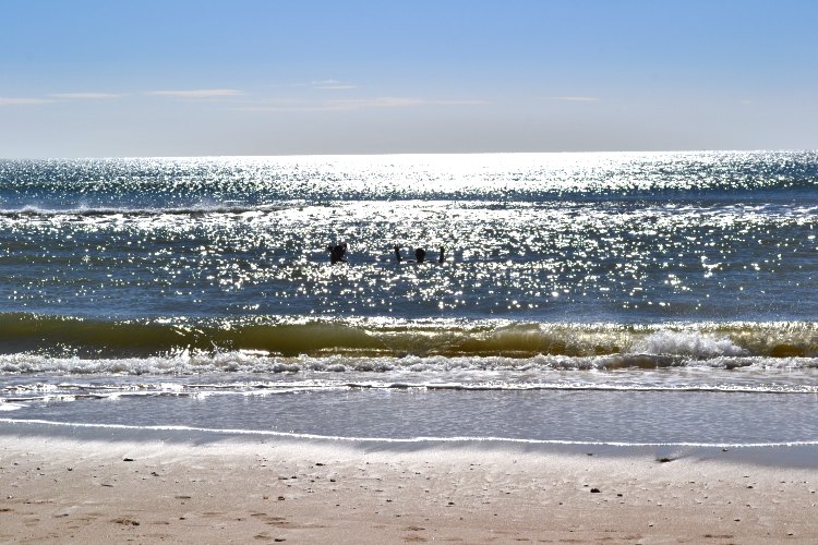 After lunch, and some snoozing, my niece and I braved the sea. The sea temperature was apparently 13-15 degrees Celsius and surfers were advised to wear wetsuits and boots but we're tougher than that...