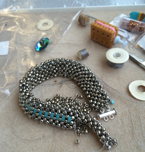 On the way there I finally managed to finish the Tirette kit from beads Gone Wild that I bought a few months ago.