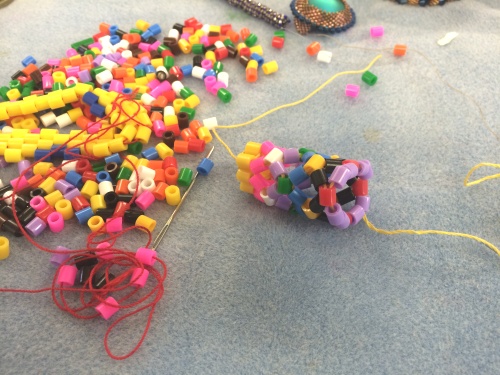 The class went well and everyone got at least one beaded bead or pendant made and began their rope.