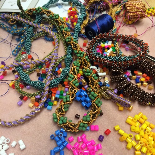 It was a busy, packed day and it was such a pleasure to finally see people bead my ideas and see so many samples and variations appear over the day.