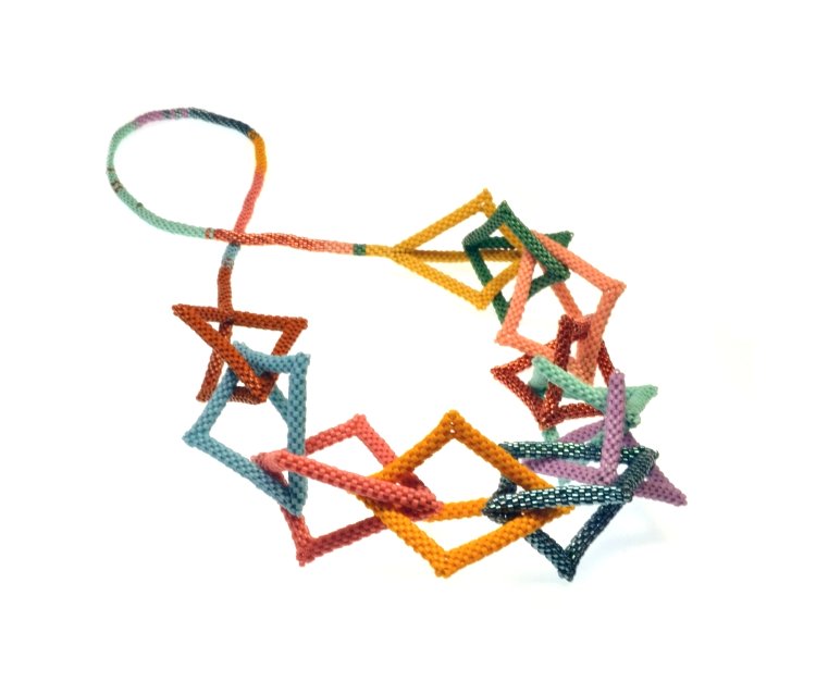 If you attend you'll learn how to bead advanced 3D geometric shapes which are ideal for turning into fully-beaded chains or for using as components in other beadwork.