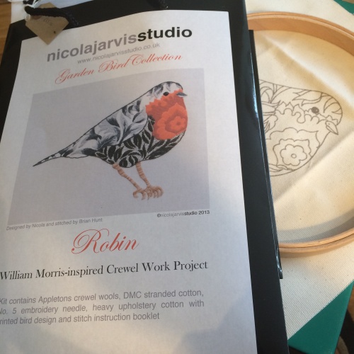 Once I'd finished my fox I moved onto this crewel-work robin kit from Nicola Jarvis.