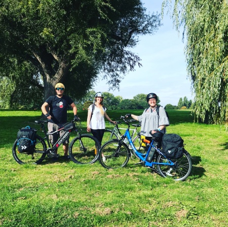 3 hours in and we're worn out and stressed from the nightmare that is cycle paths with barriers every few hundred feet where we have to stop, get off our bikes and basically lift them over the gates to continue. I guess they're designed to stop motorbikes but they're exhausting and very heavy work. In 2 1/2 hours we've only managed to go 12 miles due to the constant stopping and helping each other.