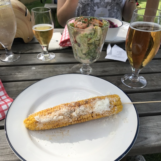 Soon we hit Bray, home of many good restaurants, and 16+ miles and 3 1/2 hours in it's time for lunch so we find the nearest pub garden, which happens to belong to Heston Blumenthal's Crown who are having a a barbecue, and we eat and toast our progress so far... knowing that we have 20+ miles to go until we can stop for the day...