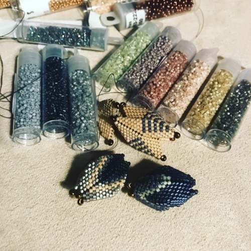 On the train there and back I did some beading and tried to wind up the projects based on these samples shown here. They've been in progress for 7+ years so it'll be nice to finally finish them and share them.