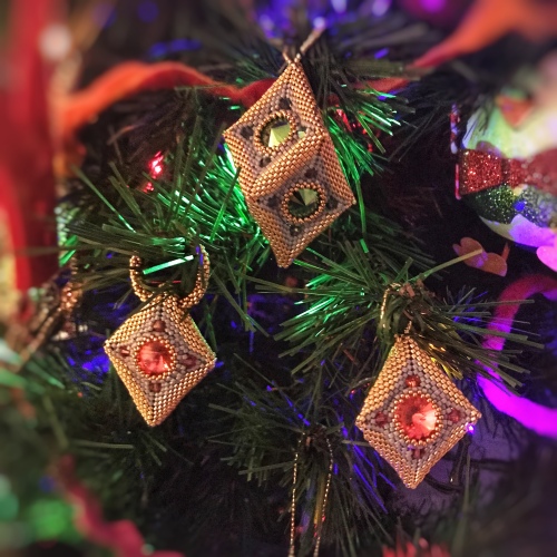 I've also been busy beading the bonus ornaments and now have 3 out of the 4 ornaments included in the Christmas 2018 Secret Beadalong hanging on my tree!