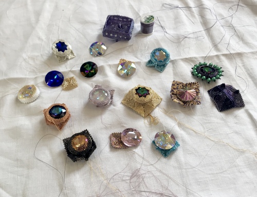 A fab day in Leicester beading my Peacock Pearl Box with a lovely group of ladies - so many inspiring colours used!
