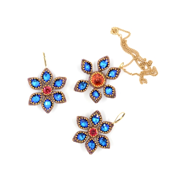 Lemon Blossoms are perfect as pendants, necklace centrepieces or earrings and these intricately beaded components can be beaded with a variety of different centres using different sizes of focal crystals.