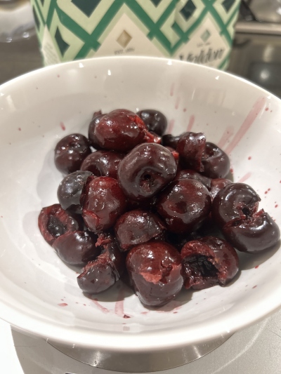 I've been making salads, tarts, ice-creams and a lovely cherry infused salt which goes so well on homemade bitter chocolate ice-cream.