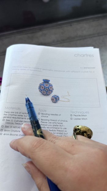 In addition I check it myself with different needles & thread as that can make a huge difference... and then everything gets check and tested and re-beaded by someone else (or multiple people) to ensure it makes sense to others and that different people with different tensions and styles of beading can make the project too.
