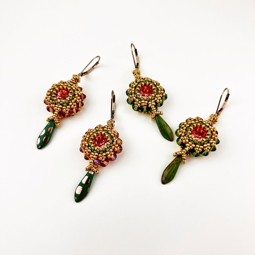I love the dagger beads so much the other day I couldn't resist making 2 pairs of my Silma earrings… and there are a few more on my mat… Some of you have been waiting literally years for this class so I'm excited to soon be teaching this project again. This intermediate+ beading class (which includes online videos you can watch any time) covers a dazzling project that features unique beaded bead pendants (which can also be earrings) strung on a specially-designed coordinating beaded rope with a fully beaded clasp. Designed to test your beading skills this class uses small beads to create versatile, variable & interchangeable pieces so you can make the finished piece of jewellery of your choice. A full requirements list will be sent when you book but the general requirements are: