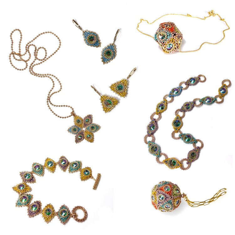Rivoli Beadwork Volume 2 (just like Volume 1) has 5 different themed chapters for the projects ('Seed Beads', 'Pearls', 'Geometric', 'Extra Sparkle' and 'Shaped Beads').