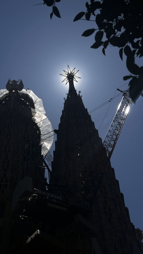 When our guide returned he excitedly took us around the corner where we now had the perfect view of the star which was added atop the Sagrada Família in 2021 which the project we were beading was inspired by and as we took our photos he told us that the power was out in all of Spain, and also Portugal and we realised that it was more of an issue than we first thought...