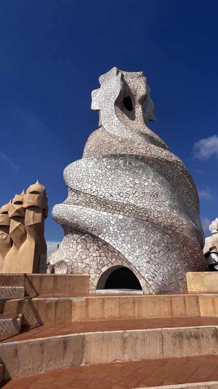 Next up was an amazing lunch (all the food here is so good) and then a trip to Casa Milà (also designed by Gaudi) which is an incredible apartment block featuring his trademark design details (including some wonderful geometric structure work) and again an amazing roof full of unique adornment.