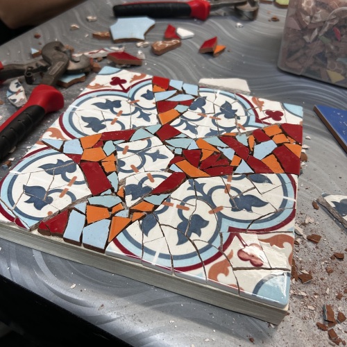 Our morning began with a visit to Studio Mosaiccos for a work in the Trencadís mosaic technique much used by Antoni Gaudi and this was a really fun & colourful thing to do together and there were some incredible pieces made. I worked on making a trivet which now proudly sits in my home and reminds me of many happy days.