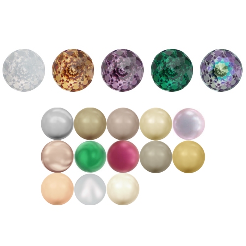 The necklace centrepiece is formed of a reversible Pendant on a Pendant Hanger both of which use striking Swarovski Dome crystals along with 2mm Swarovski Pearls. The centrepiece & adornment are designed to be stored on & in the co-ordinating Stand to give the effect of a beaded adornment on the Stand.