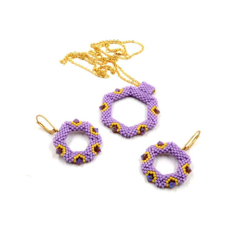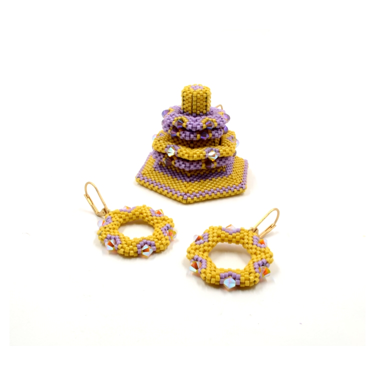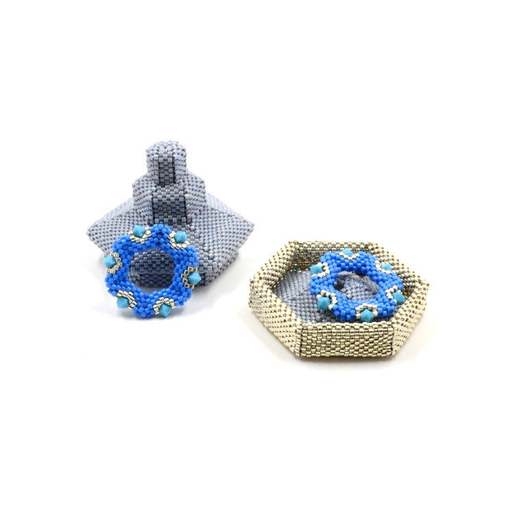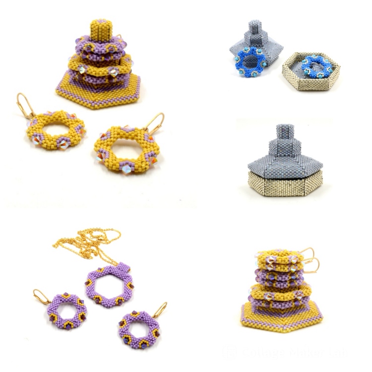 My latest pattern (previously a virtual class) Causeway is a series which combines geometric beadwork with sparkle for jewellery with its own beaded display or storage stand!