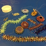 Today is a Peacock Flower Necklace Class at Creative Castle and I was so inspired by the colour scheme that 2 people used that I ended up beginning a new piece for myself in those colours!