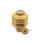 Decisions, decisions…My bead mat today… now do I keep the Light Colorado Topaz crystals with the Vintage Good pearls and the Emerald crystals with the Eden Green pearls… or do I mix them up…