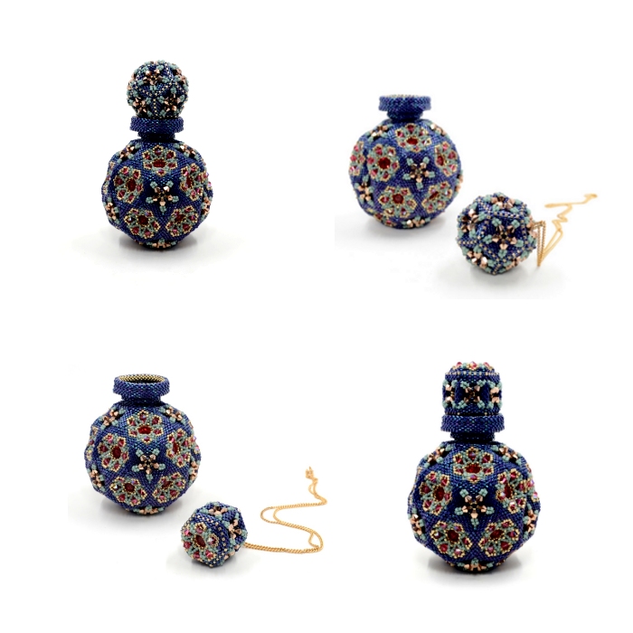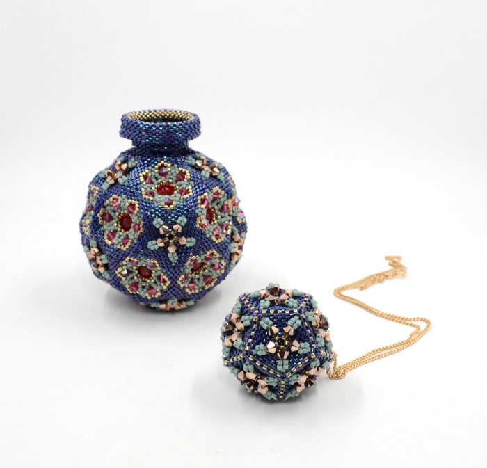 'Chartres' combines advanced geometric beadwork with different sizes & shapes of beads and crystals to create a series of beadwork that encompasses vessels, ornaments and jewellery.