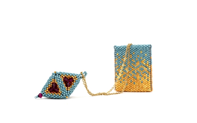 Take your geometric beading in a new direction with this beaded pendant or ornament with its own unique stand!