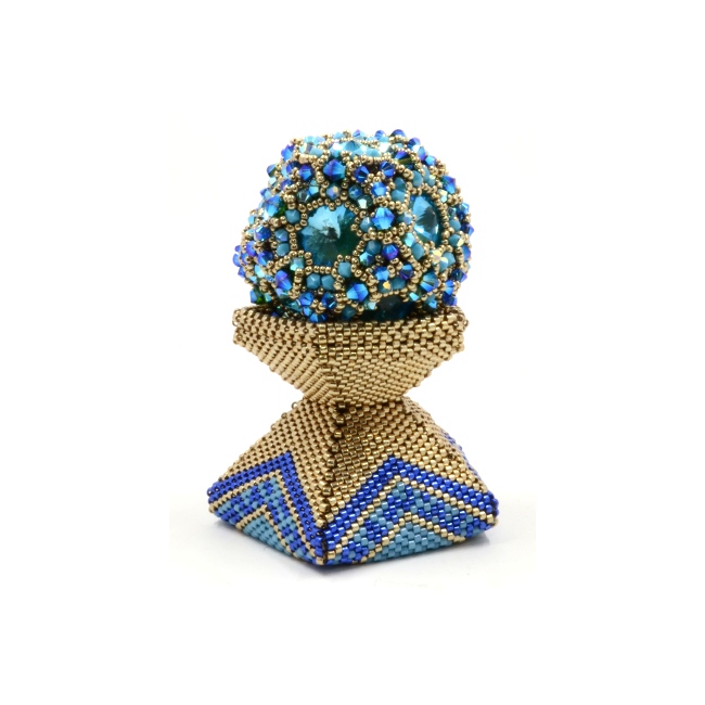 Combine geometric beadwork & crystals for a dazzling pendant/ ornament with a variety of unique stands.