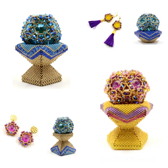 Combine geometric beadwork & crystals for a dazzling pendant/ ornament with a variety of unique stands.